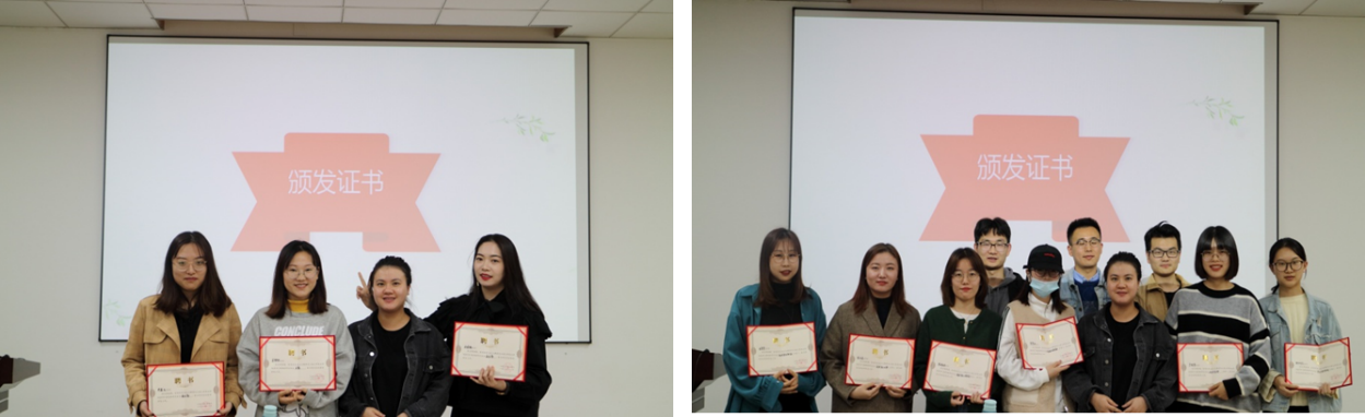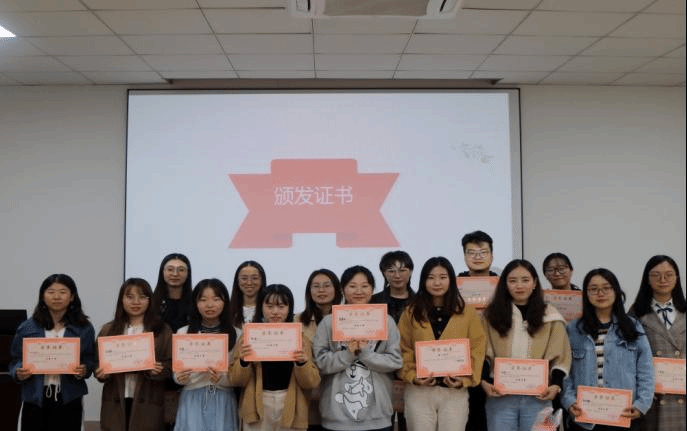 曹敏老师为研究生会2019届主席团和部长们颁发了聘书,肯定了他们的努力和付出。