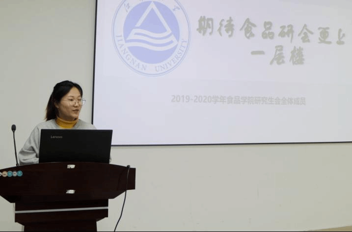 研究生会换届大会在食品楼916双兔厅举行,指导老师曹敏参加会议。