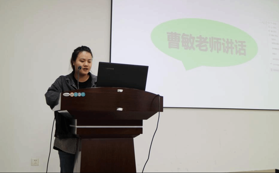 会议伊始,曹敏老师上台寄语。她肯定了研究生会一年以来取得的丰硕成果,赞扬了研究生会2019届主席团和部长们认真负责、细心踏实的工作态度,对他们的付出表示了衷心的感谢。她从球友会
