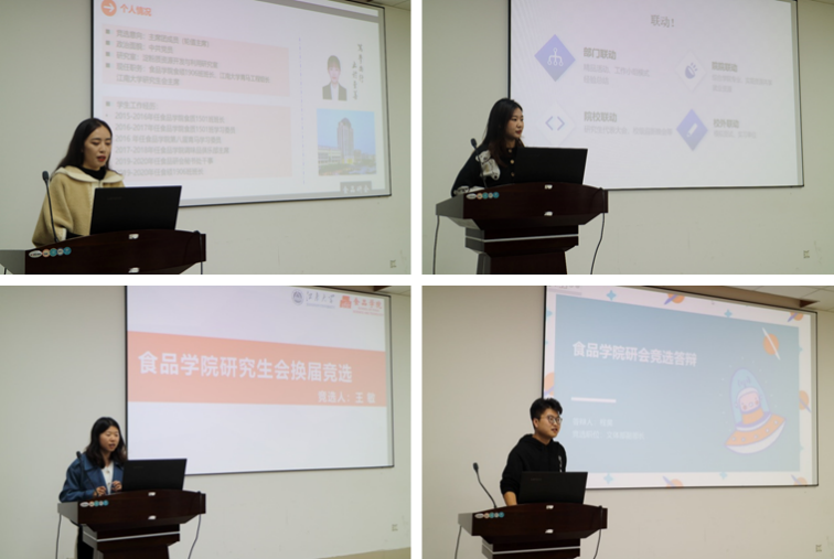 主席团候选人冯焱、刘圣楠、耿涵讲述了自己与研会相遇相识、相依相伴的经历,分别着眼于研会的内部调整和外部拓展,对研究生会未来的工作做出了规划。