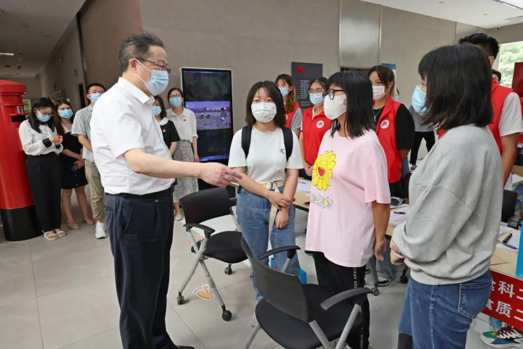 新生报到过程中,校党委书记朱庆葆、校长陈卫,校党委副书记戴月波、副校长张影陆来到球友会