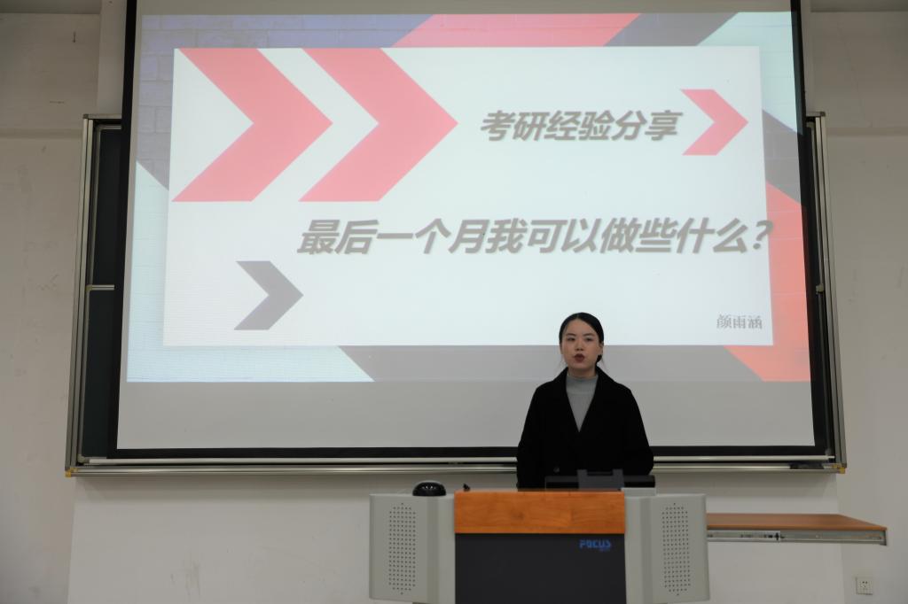 食硕2107班颜雨涵进行考研分享。颜雨涵同学分享了自己的备考状态,从各项考试科目的准备内容为考研学生提出建议,耐心解答同学们的问题。