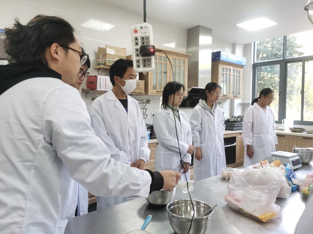 为了此次活动能够顺利进行,调味品俱乐部提前一天进行了产品试做,并提前半小时到达现场进行设备清洗及食材准备。调味品俱乐部选择了简单易学的松饼舒芙蕾进行现场指导教学。在俱乐部同学的指导下,新生按照操作步骤动手尝试,在团队合作中成功做出香甜松软的松饼舒芙蕾。新同学们兴奋地试吃自己的产品,并合影留念。