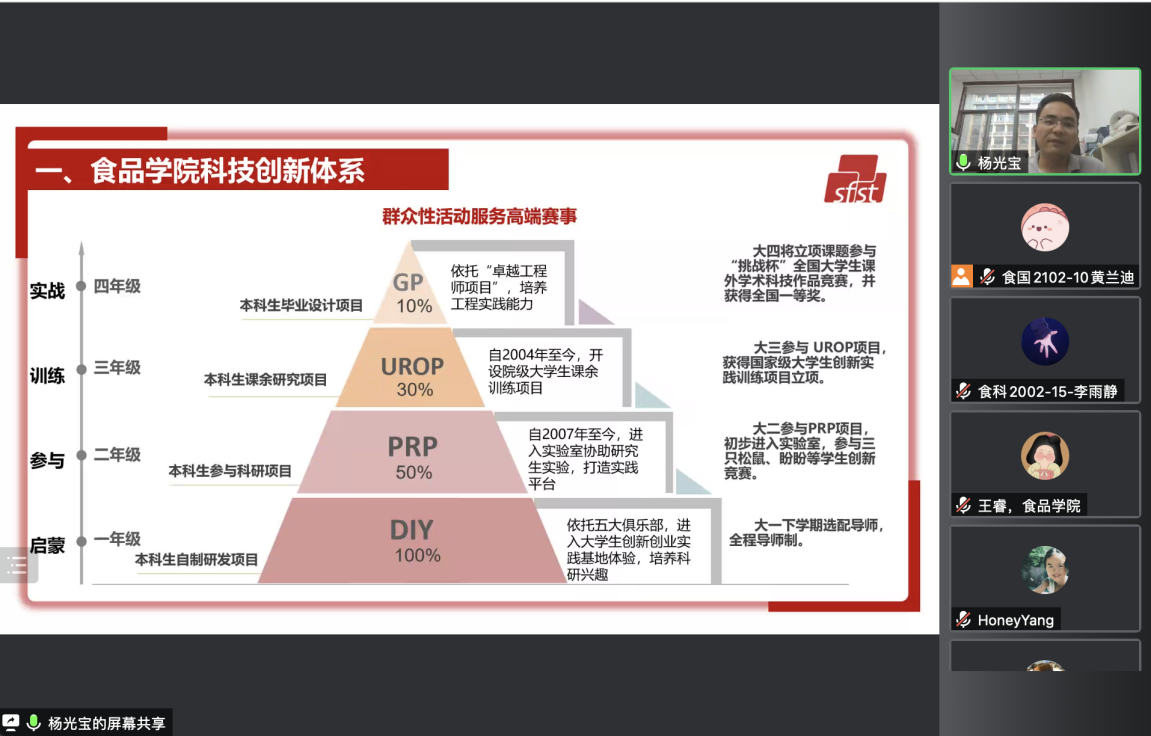 本科生的科创体系。他表示通过开展的PRP项目,搭建深入科研实践的桥梁,使本科生提前进入实验室,接触食品科研实验,提升实验技能,希望大家好好把握机会。