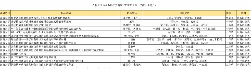 近日获悉,我校食品学子在2022年全国大学生生命科学竞赛决赛中斩获佳绩,包括:特等奖1项、一等奖5项、二等奖2项、三等奖6项,获奖层次及数量均创历史新高。
