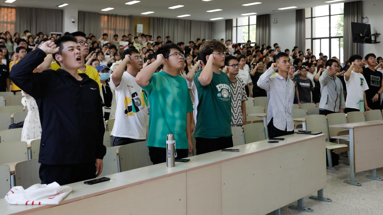 2022级本科生军训动员大会暨学业生涯规划活动在第二教学楼2A127教室举行。党委副书记、副院长李雷,辅导员张任,优秀老生代表及2022级全体本科生参加活动。活动由张任主持。