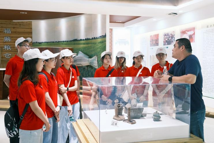 7月16日,实践团先后走进福鼎市数个乡村,了解乡土乡情。成员们首站前往海田村,在稻浪翻涌中感受浓厚的农耕文化气息。“‘没有七八下,不敢来店下’,这句口口相传的谚语生动诠释了我们这边农民的插秧技术特别厉害”,村干部费汉选自豪地说到。在农耕文化展示馆,店下镇副镇长施传峰、科技副镇长丁百川为成员们详细讲述店下镇独有的“稻-稻-豆”种植模式。这一独特的种植模式,反映着土地的高效利用与农户种植的智慧,让食品学子深刻体会到农耕文明的源远流长与生生不息。