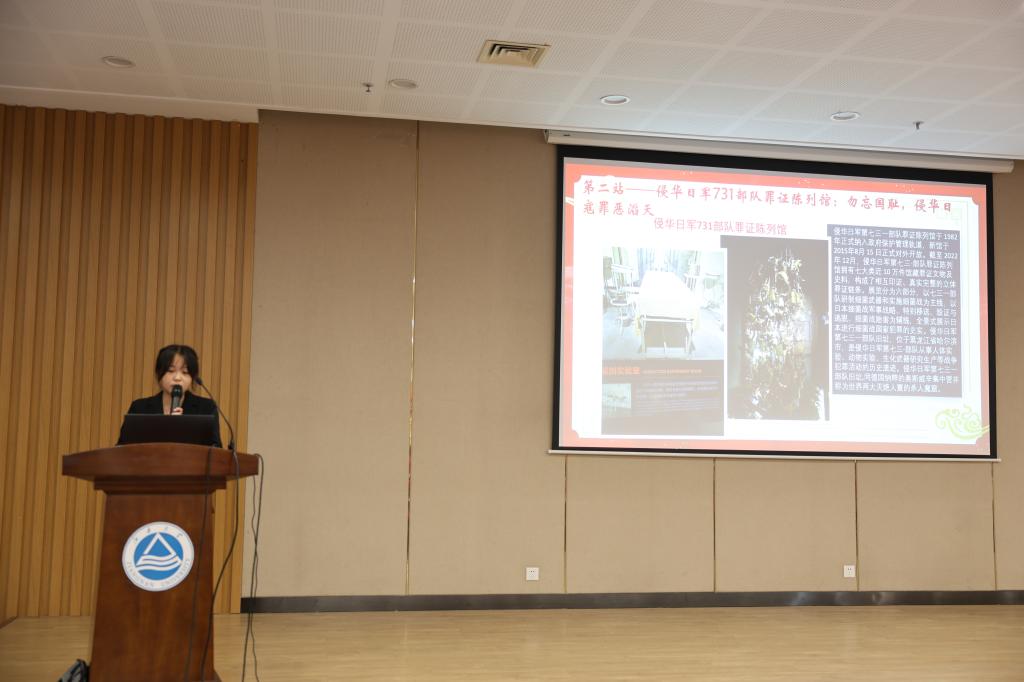“星火燎原”社会实践团代表倪红箔讲述队员们在各自家乡寻访红色景点的故事。他们追寻红色足迹,深刻感悟红色精神,体会到了江南学子“生逢其时,重任在肩”的责任与使命。