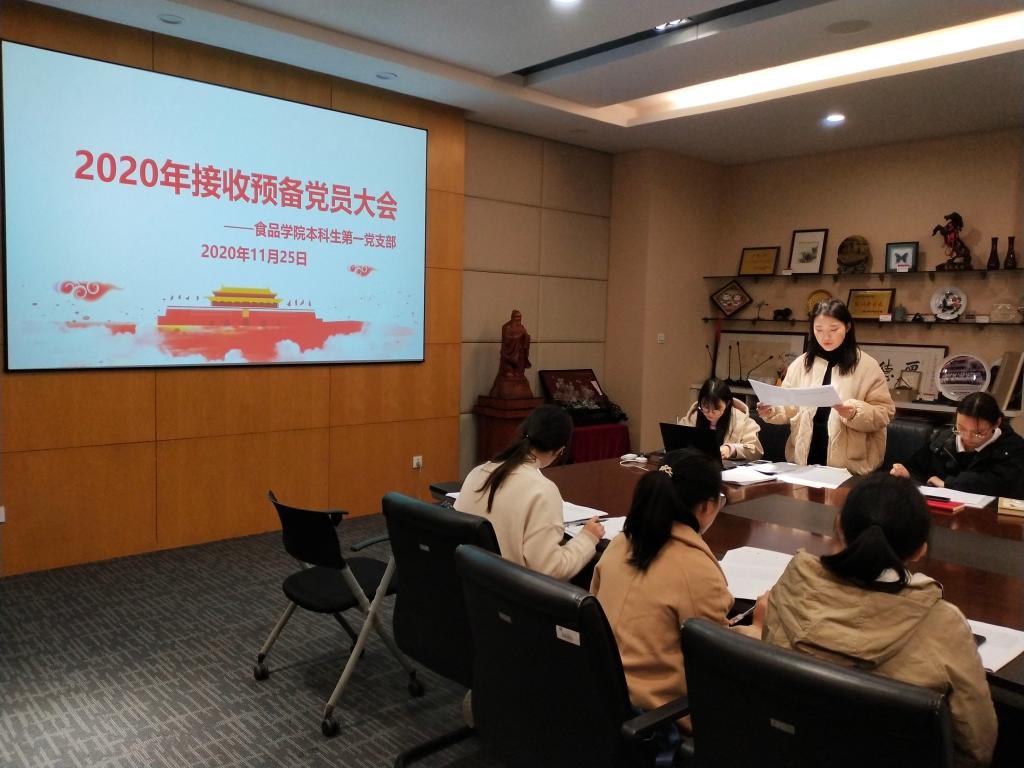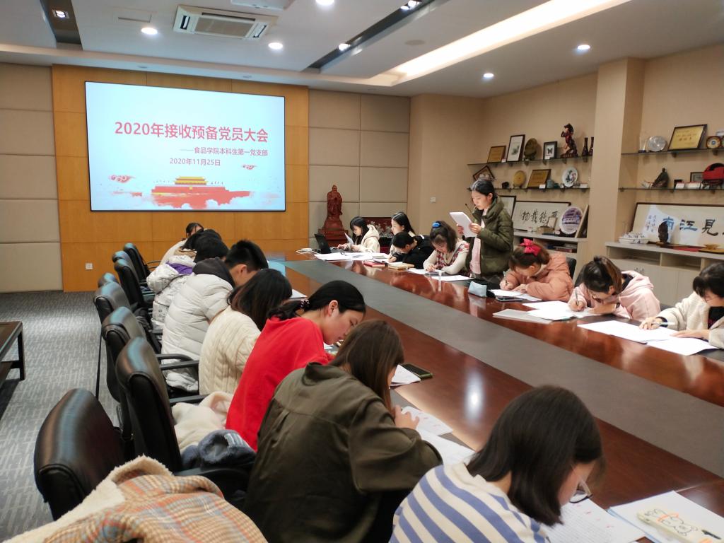 本科生第一党支部在食品楼D910举行关于发展对象转预备党员的党支部大会。会议由李绮婷同志主持,支部全体师生党员参加。
