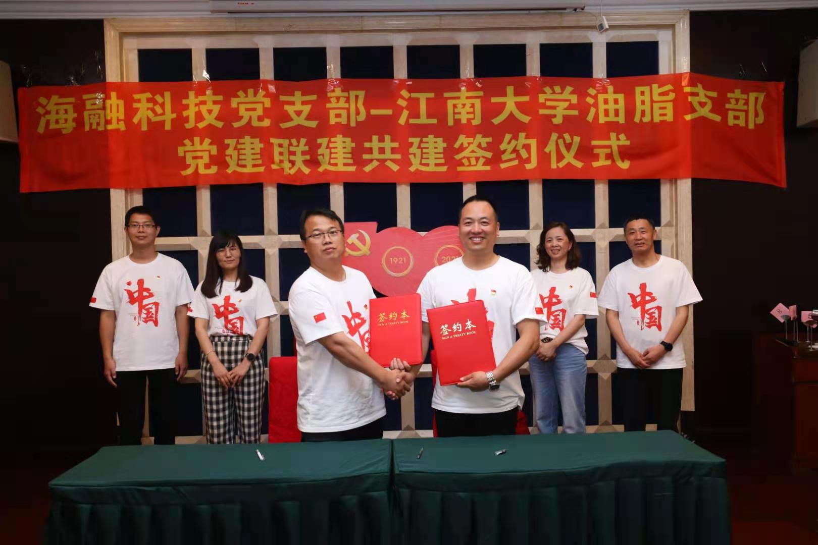 油脂与植物蛋白工程研究中心教师党支部开展党建联建共建协议签约仪式。仪式上,海融科技党支部书记叶金郁同志就海融食品科技有限公司党建工作、廉政建设、校企合作以及业务发展等方面进行了简要介绍。油脂与植物蛋白研究中心教师党支部书记徐勇将同志围绕党建成果、学科建设、团队研究、合作交流等方面,介绍了球友会