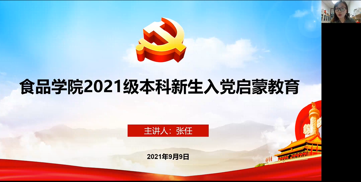 2021级本科生入党启蒙教育在线上举行,2021级本科生辅导员张任担任主讲人。
