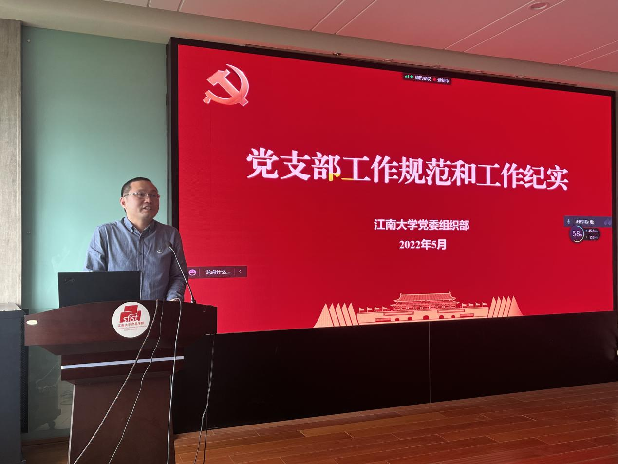 专题培训邀请校党委组织部董小平老师主讲。董老师以“党支部工作规范和工作纪实”为题,结合相关政策文件、工作条例和实际案例,分别从“党支部工作依据”“党支部工作规范”“党支部工作纪实”等三个方面进行讲解。他首先从党的基层组织基本任务、高校党建工作标准出发,具体解读了《中国共产党支部工作条例(试行)》中规范党支部工作的八大基本任务,重点对组织生活、“三会一课”、主题党日活动、专题组织生活会、组织生活会和民主评议党员等进行概念辨析和体系化指导。随后,他结合具体工作对《党支部工作手册》纪实中出现的问题进行详细讲解,提出要提高思想认识、熟悉工作流程,强化责任担当、加强监督指导,有序推进党建工作的科学化、制度化、规范化、标准化建设。