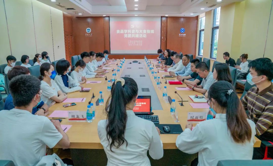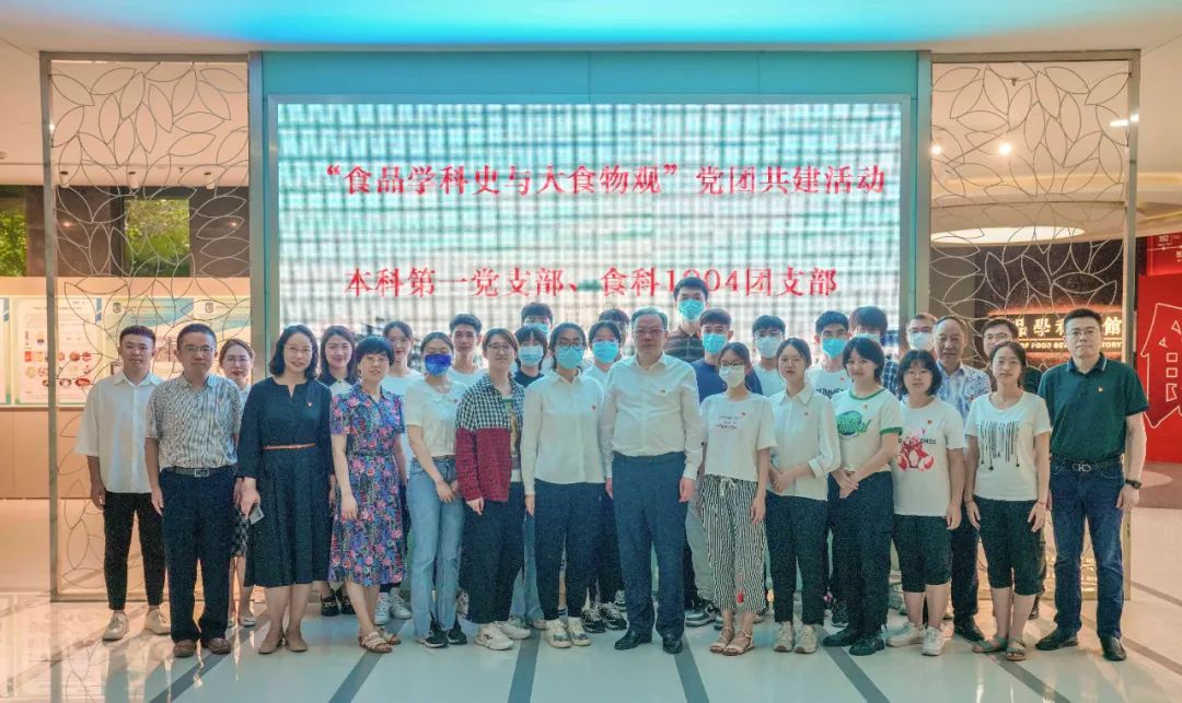 本科生第一党支部、食科1904团支部在国家工程研究中心联合举办“食品学科史与大食物观”党团共建活动。校党委书记朱庆葆,校党委常委、党委办公室主任、党委统战部部长朱飞,学生工作处处长张菁燕,团委书记魏珍吉,球友会