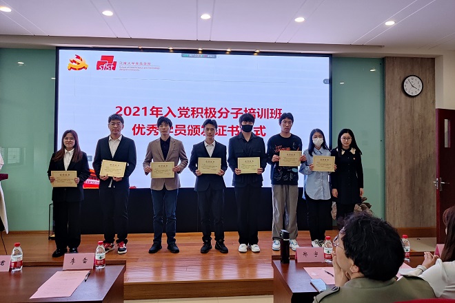 随后,胡卉君为2021年入党积极分子培训班优秀学员颁发证书。