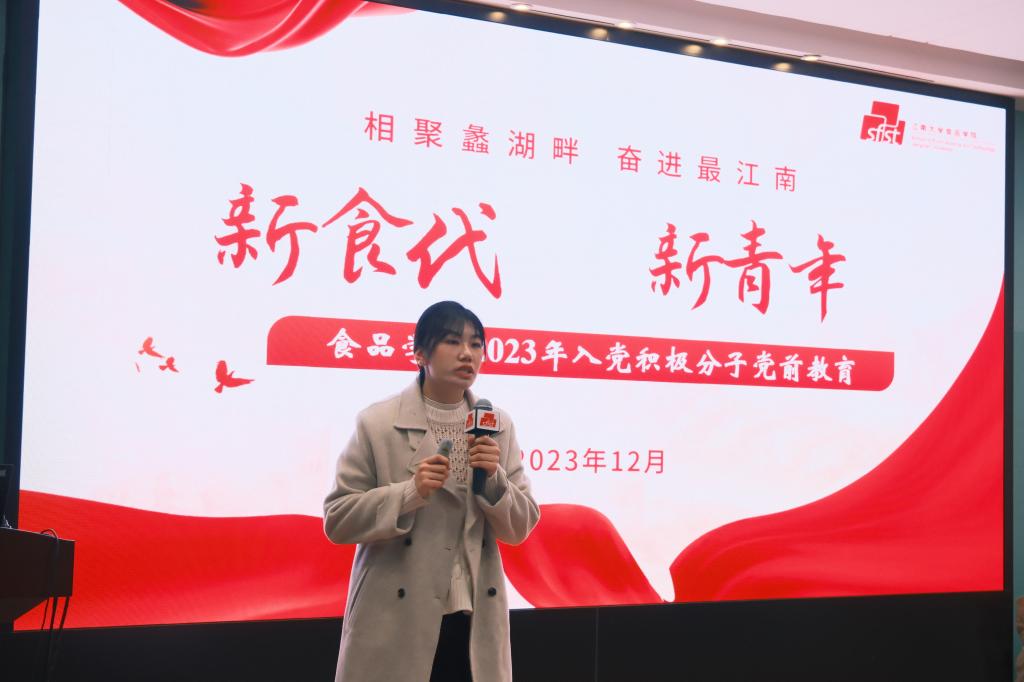 刘璇向2023年新认定的入党积极分子作教育提示。她详细介绍入党流程,向全体学员提出具体的学习目标,要求大家坚定理想信念,重视党课学习,进一步端正入党动机,全心全意为人民服务。