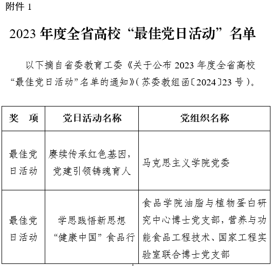 近日,江苏省委教育工委公布2023年度全省高校“最佳党日活动”评选结果,学校党委公布2023年度江南大学最佳党日活动获奖名单。球友会