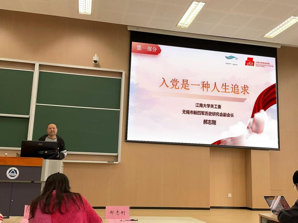 在第二教学楼2A127举办2024级新生入党启蒙教育。无锡市新四军历史研究会副会长、校关工委郝志刚受邀担任主讲嘉宾。球友会