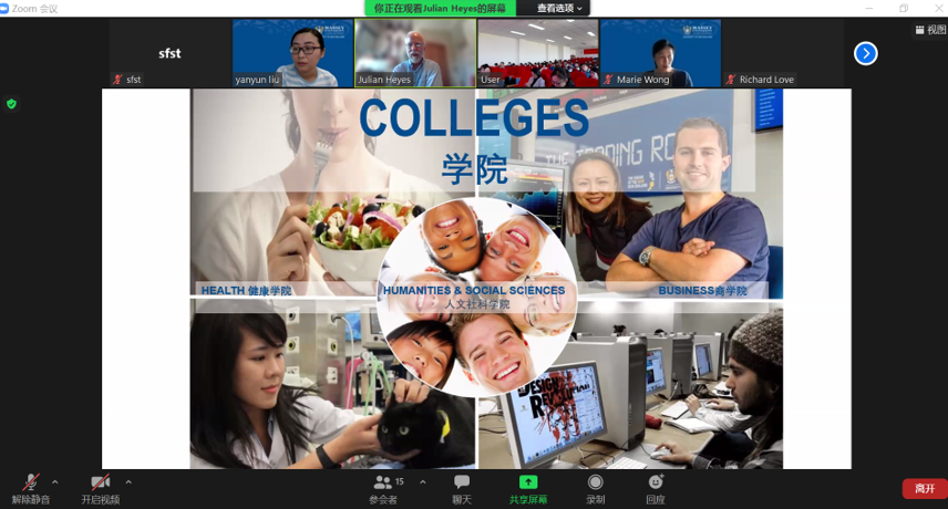 院长Julian Heyes教授现场连线,介绍了梅西大学优美的校园环境及开放严谨的学术氛围,并欢迎同学们到新西兰梅西大学学习和生活;系主任Richard Love博士对中外合作办学项目进行了简要介绍,他希望中外合作办学班能引入先进的教学理念,能够把国际化教育模式融入专业人才培养中,不断提高人才培养质量。