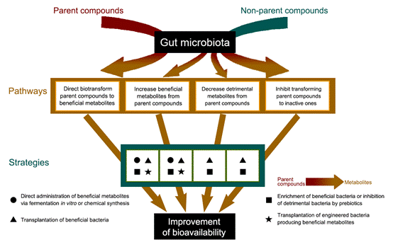 强效力的食品功能因子和不同药品包括中药在使用的过程中往往出现低效问题,这一困惑人们多年的问题主要是由于低生物利用度的原因。肠道中酶、菌等是人体内有效的生物反应器,对食品功能因子和药品起着重要的加工作用。正是这一加工作用,使得部分食品功能因子和药品药效增强、降低或丧失,即为生物利用度的高低现象。此篇报道从基于益生元--肠道---生物利用度的关系,重新定义和丰富了食品功能因子和药品的生物利用度。同时,详述了肠道中酶、菌影响生物利用度的四种途径,针对这四种途径给出了有效提高食品功能因子和药品生物利用度以及减少副作用的策略。该策略拓展为新食品功能因子和药品的开发和利用提供了新思路,食品生物利用度的概念与理论或被重新定义和丰富。