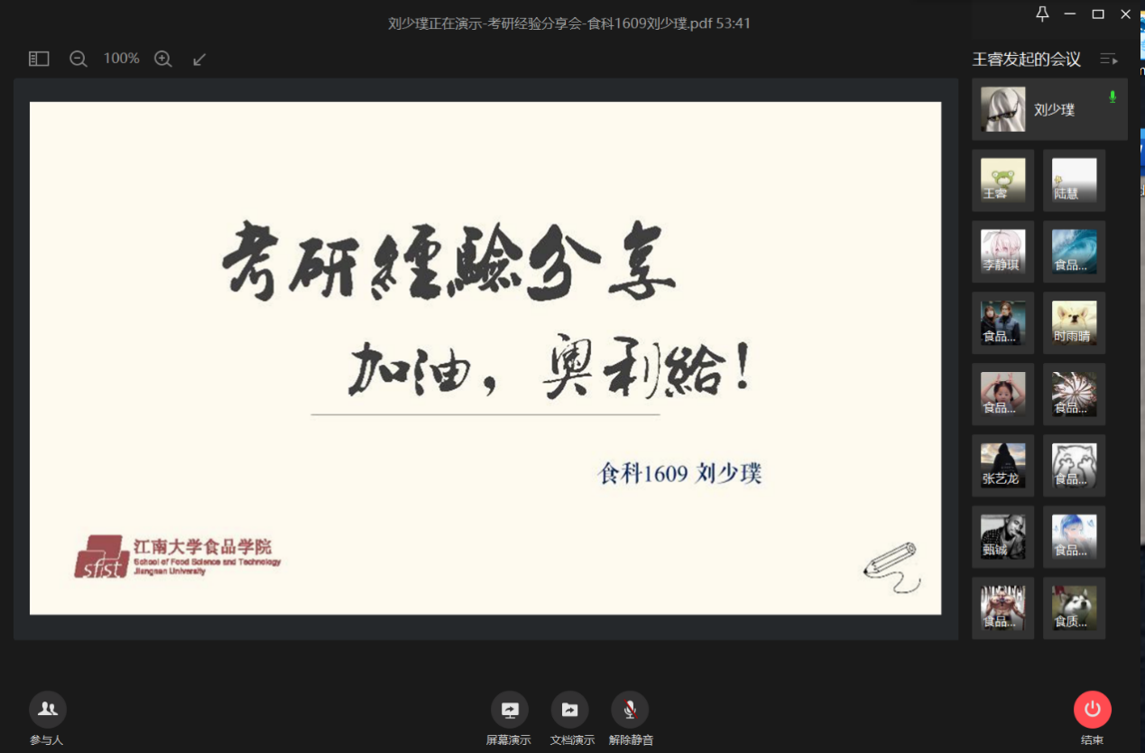 开展了线上考研经验分享会,孙孟琦、瞿佳丽、袁志良等6位2020届优秀考研学子在会上分享考研成功经验,300余名备考学生参与聆听。