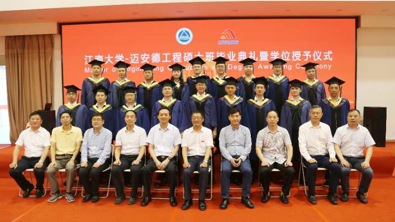 院长刘元法教授,与迈安德董事长徐斌、总裁荣臻一同出席毕业典礼。参加本场活动的还有江南大学导师金征宇教授、王兴国教授、金青哲教授和洪雁教授等,以及迈安德公司副董事长汪沐、生产总监毛卫江、营销总监周斌、技术总监徐静等。