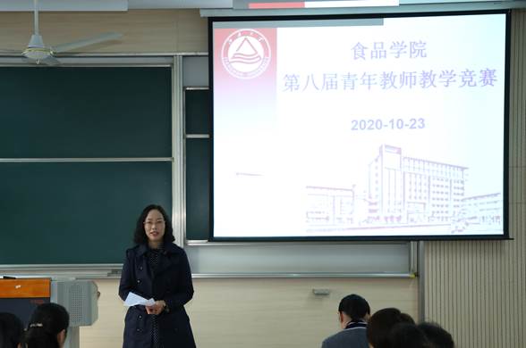 工会主席钟芳教授做赛前讲话,她根据自己多年的教学经验,和各位老师分享了她的教学体会,她希望各位青年老师通过本次竞赛,各位参赛老师认真做好教学内容的设计,对教学内容的深度和重难点进行深入的研究,把劳模精神、工匠精神等元素融入到教学中,充分展示教学的内涵,赛出自己的风采。