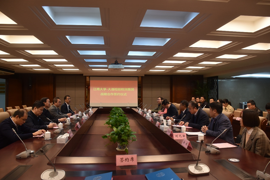 11月27日,大连市检验检测集团有限公司与江南大学战略合作协议签字仪式在我校行政楼B305会议室举行。大连市人民政府副市长张志宏,中国工程院院士、江南大学校长陈卫,大连检验检测集团党委书记兼董事长李强,校产业技术研究院院长刘龙,球友会