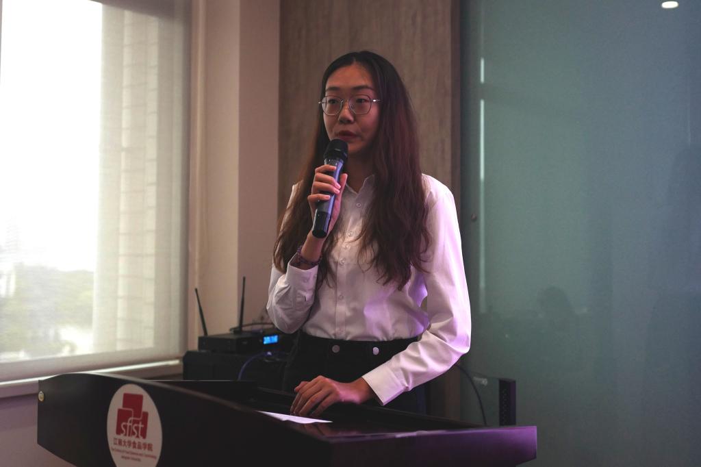 吕玲怡同学分享了“菌菌说”西部儿童食育课堂项目。食育在我国尚处于萌芽阶段,团队在新疆和田、无锡两地开展了多场食育讲座,发现两地孩子对食品安全和营养知识了解程度差异较大,重新明确任务重心、聚焦西部,开发适合边远地区儿童的食育教材。吕玲怡表示,食育之路任重道远,她呼吁更多食品人加入,为边远地区青少年儿童的健康和未来出一份力,为2030健康中国的宏伟目标添砖加瓦。