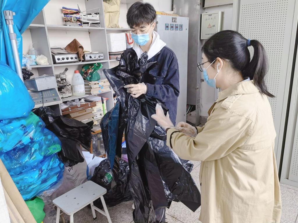 “前进路上,有风有雨是常态,风雨无阻是心态,风雨兼程是状态。”朱珠回忆起疫情前每天傍晚看到的景象,由衷感慨道,“每当迎面碰上保洁人员一个人费力地拉拽着巨大的推车,堆砌成山的垃圾好像要将他整个人都淹没,我都想上前帮忙搭把手、出份力……”她表示,加入垃圾清理小组的这些天,经常阴雨连绵,环境黏腻湿润,垃圾桶周边更是重灾区,晚一步清理,空气中就多一分令人窒息的气味。“往往垃圾刚一过半,我们便迅速组织人手转运至楼下,雨大的时候还需要两个人相互配合,一个打伞,一个扶车,打湿的是衣边裤脚,但浇不灭的是我们劳动服务的热情”。