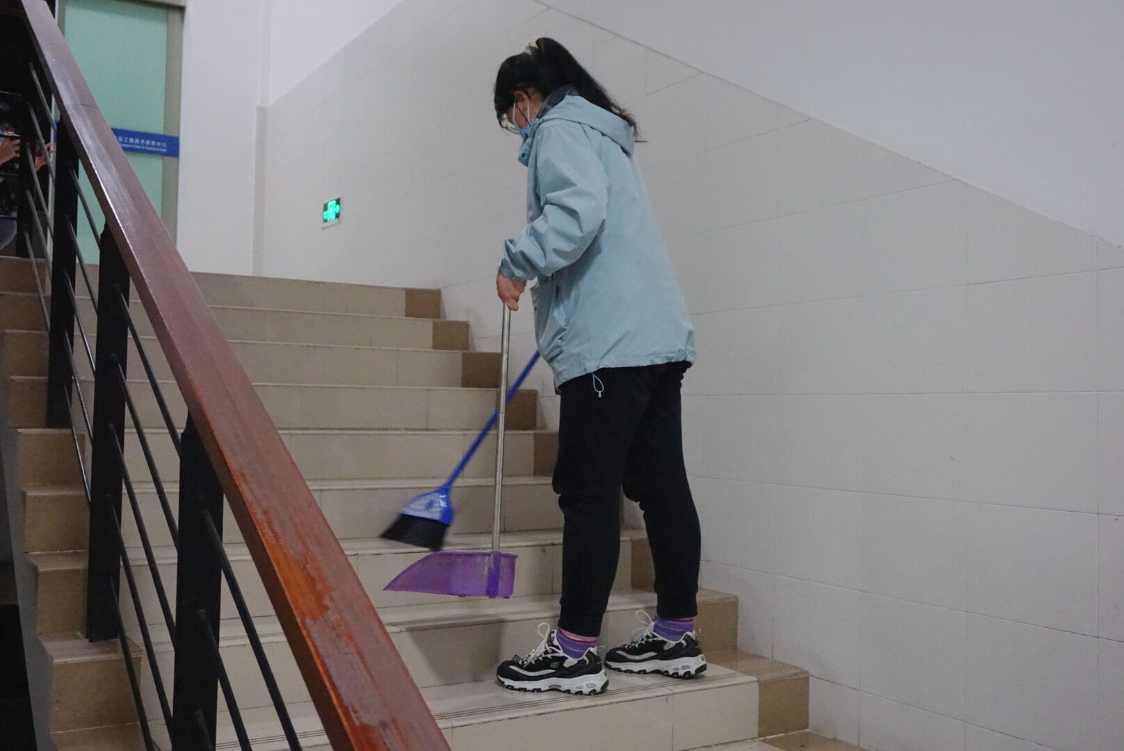 学生打扫楼梯