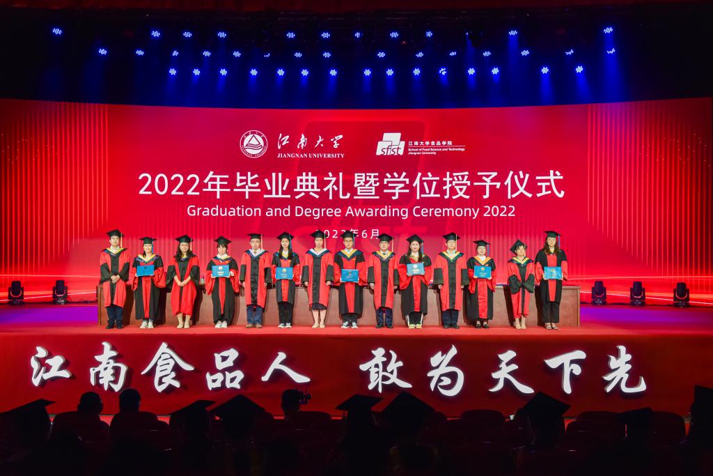 全体院领导还为2022届毕业生代表颁授“江南食品人”纪念印章。这一枚枚刻有院训的实名印章,代表着永远如水晶般的纯洁与剔透,引领着毕业生一生弘扬“江南食品人,敢为天下先”的文化与精神。