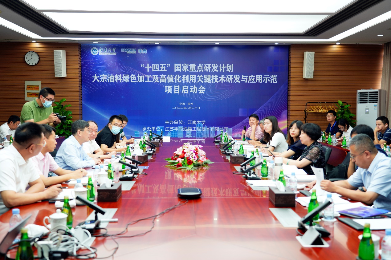 院长刘元法教授主持的“十四五”国家重点研发计划“大宗油料绿色加工及高值化利用关键技术研发与应用示范”项目启动会在江苏省扬州市以线上线下结合的方式召开。中国农村技术开发中心产业科技处副处长王静、教育部科技司项目主管赵梨利、江南大学科学技术研究院院长范大明出席会议,浙江大学刘东红教授等5位咨询专家莅临指导。启动会开幕式由项目负责人刘元法主持。