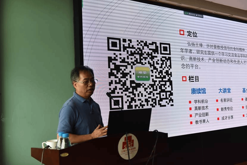 首先,钟芳教授介绍了江南大学食科教育发展基金开办“璋婴大讲堂”名家讲坛活动的初心和目的,希望通过搭建活动平台,将王璋、许时婴教授秉持的食科精神传承发扬,为青年学者为学、为人、为师树立楷模榜样。