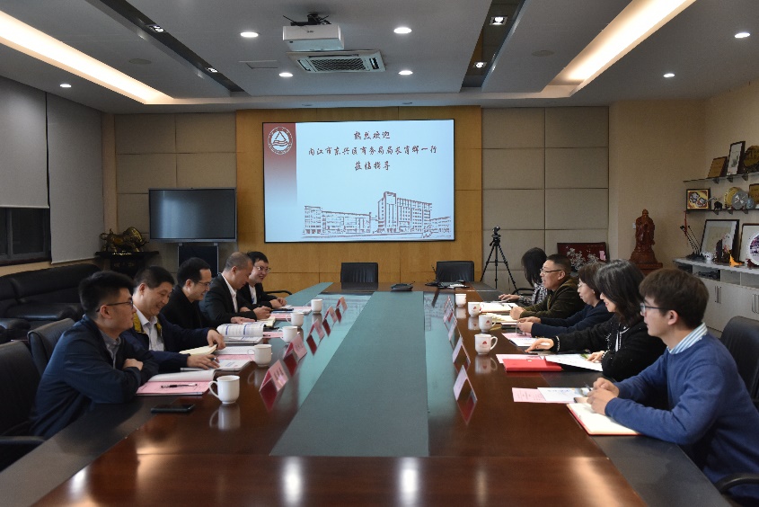 11月3号下午,四川省内江市东兴区商务局局长肖辉等一行五人前来我院调研。食品营养与功能食品中心主任范柳萍、球友会