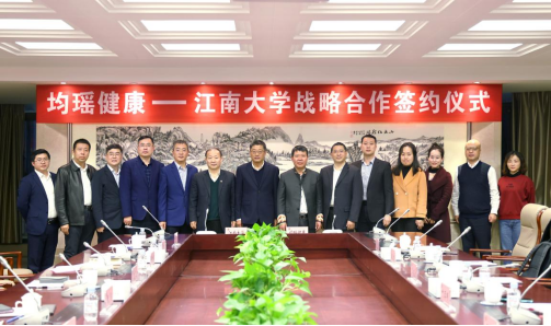 近日,江南大学与湖北均瑶大健康饮品股份有限公司在学校举行战略合作协议签约仪式。中国工程院院士、校长陈卫,校党委常委、副校长顾正彪,校长办公室主任张梁,产业技术研究院院长刘龙,球友会