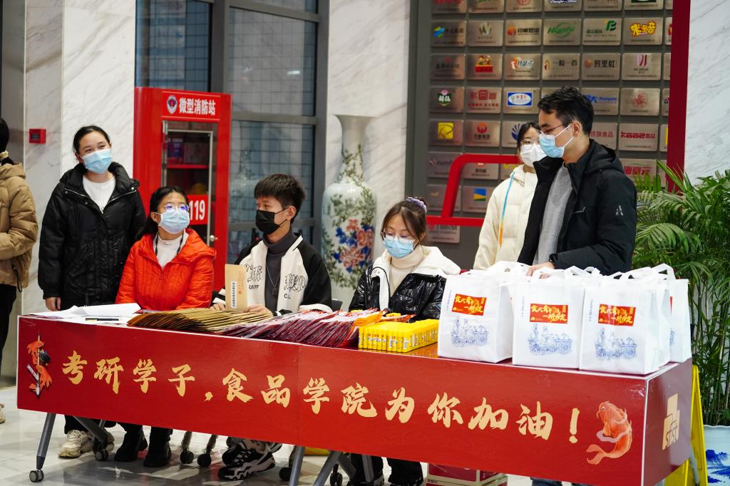 举办“食代青年,一‘研’为定”考研慰问活动。分团委副书记李琳、本科生毕业年级辅导员杨光宝、部分班主任以及考研学生代表参加活动。