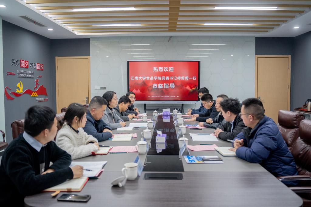 3月1日,调研组一行前往江苏大学食品与生物工程学院就党建工作、辅导员队伍建设、心理健康教育等开展交流。食品与生物工程学院党委书记万由令、副书记夏大庆等与调研组进行座谈。万由令对调研组的到来表示欢迎,简要介绍了学院的基本情况。夏大庆从辅导员队伍建设、党团建设、品牌项目等方面介绍了学生工作的整体情况。随后,双方围绕学风建设、科创竞赛、党支部建设等进行了充分交流。调研组还前往江苏大学创新创业学院交流学习相关经验做法。下午,调研组一行赴江苏丹阳天禄集团就校企合作开展调研。
