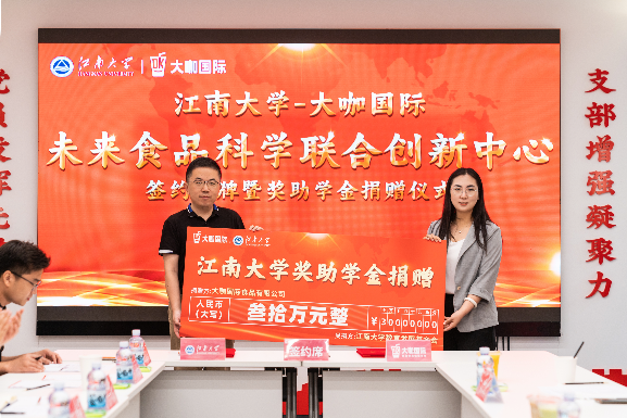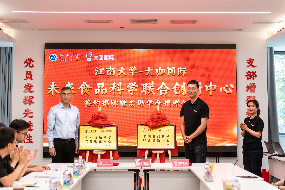 6月28日,“江南大学——大咖国际未来食品科学联合创新中心”签约揭牌暨奖助学金捐赠仪式在河南温县顺利举行。蜜雪集团副总裁、大咖国际事业群总经理赵红果,大咖国际事业群研发技术中心总监范军营、人力资源中心总监赵佳、企业发展中心总监刘先胜;球友会(QY)中国官方网站
