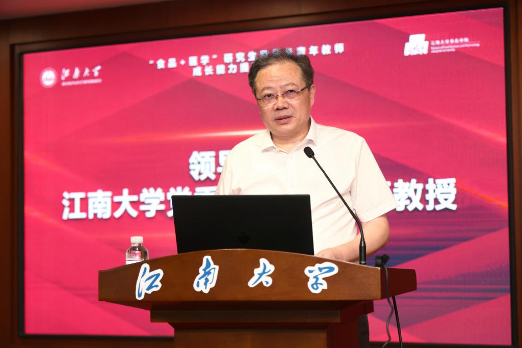 朱庆葆致辞。他指出,当前正处于关键时期,党和国家对创新型人才的需要和支持前所未有。研究生教育在培养创新人才、提高创新能力、服务经济社会发展、推进国家治理体系和治理能力现代化方面具有重要作用。研究生导师肩负着培养国家高层次创新人才、引领科技前沿创新的重要使命。本次培训聚焦研究生导师队伍建设质量提升,采用“食品+医学”的协同培养模式,两院的导师们共同担负着培养“面向人民生命安全”高层次人才的使命任务,对于推动研究生指导经验交叉、促进研究生培养“协同飞跃”具有重要意义。他希望研究生导师们能够加强学习、充分交流、交互合作、共同成长,为提升学校研究生培养质量、培养更多高水平创新型人才作出新的更大贡献。