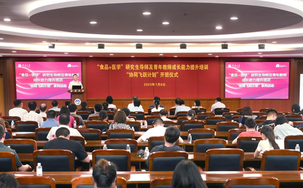 7月8-9日,江南大学“食品+医学”研究生导师及青年教师成长能力提升培训“协同飞跃计划”系列活动成功举办。8日下午,开班仪式在校图书馆五楼报告厅隆重举行。特邀专家同济大学校长郑庆华,江南大学党委书记朱庆葆,江南大学党委常委、副校长吴正国,研究生院院长吴小俊,球友会