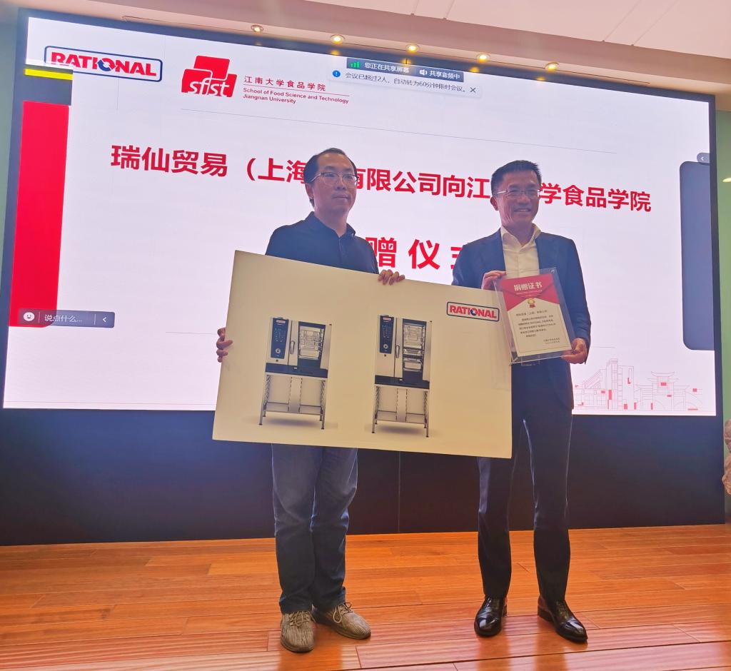 联合举办的首届“Rational杯”食品加工创新大赛在食品楼D912报告厅正式启动。瑞仙贸易(上海)有限公司总经理俞文军、市场总监栾斌、应用研发总监唐学燕、华东区域总监吴建友、华东区域经理杨博,球友会
