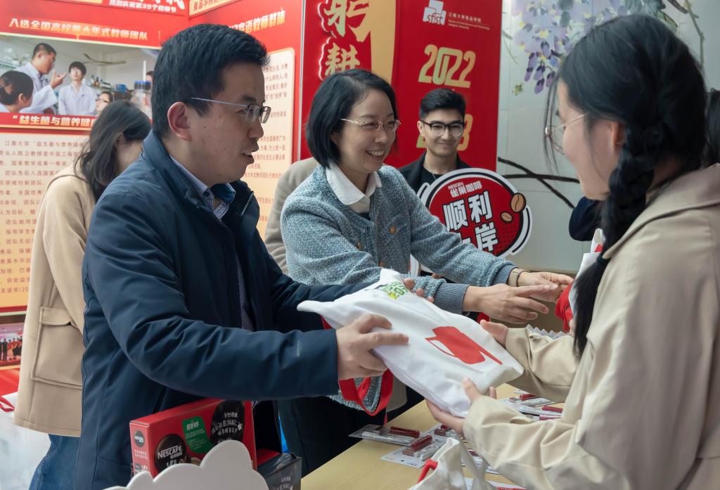 党委书记傅莉莉,副书记李雷,副院长谢云飞,2020级本科生班主任王立、常明及全体辅导员在学院门厅为“研”途路上认真备考的“食”代学子送去暖心补给,激励他们全力以赴、笃志前行,跑赢考研这场“马拉松”。