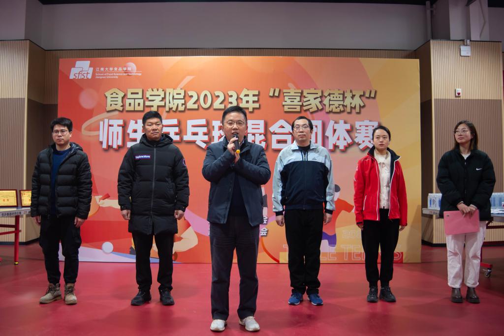 共有6支研究生队伍、8支本科生队伍参赛,14名教工分别加入其中一支队伍。比赛采用男单、女单、男双、女双、混双五场对抗赛的形式比拼团体竞技水平。比赛伊始,选手们便迅速进入状态,师生配合妙球频出,张驰之间展现昂扬姿态,一攻一守尽显食品风采。