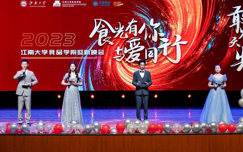分团委举办,学生会、研究生会承办,中国移动无锡分公司、陈克明食品股份有限公司友情支持的2023年“食光有你,与爱同行”迎新晚会在文浩馆观众厅精彩上演。学校党委办公室副主任代卉、国际教育学院党总支副书记王胤;球友会