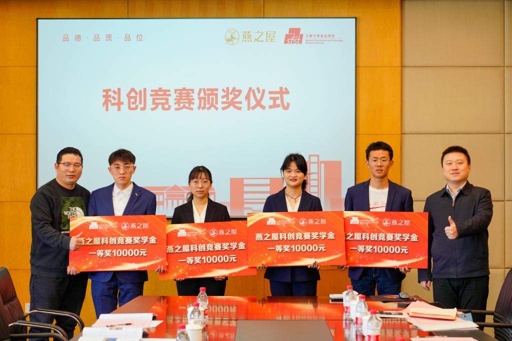 2023级硕士研究生、桉禾生项目负责人、中国国际大学生创新大赛金奖得主全明霞代表获奖学生发言。她表示,科创竞赛是求学生涯中重要的激励与鞭策,其中每一环都离不开领导、老师、队友们的关心和支持,也离不开燕之屋的付出和鼎助。接下来,她会把科创的热情投入学业当中,为深度参与科研攻关、保障食品安全与生态环境奉献青春力量。