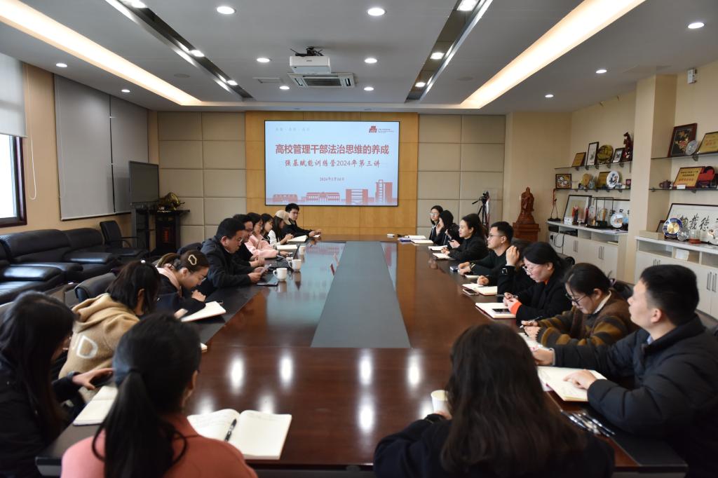 党政管理干部强基赋能训练营开办法治专题讲座。本期训练营邀请校长办公室副主任、法制工作办公室主任陆秦作题为《高校管理干部法治思维的养成》的报告。全院党政管理干部、辅导员参与本期训练营。活动由球友会