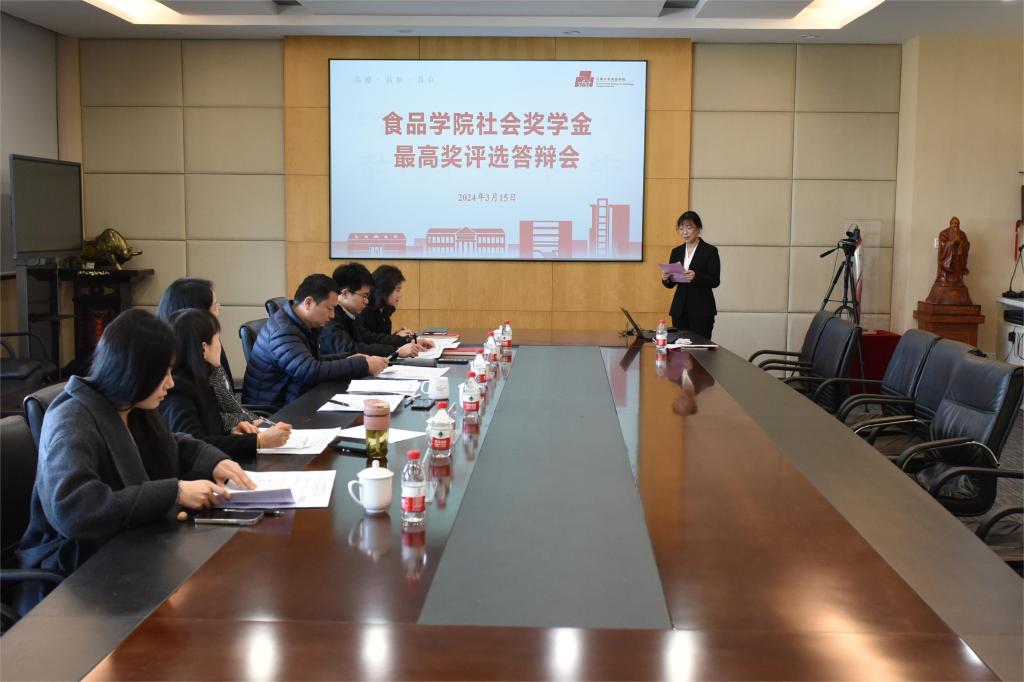 2023年度社会奖学金最高奖答辩顺利举行。该奖项在爱心企业的捐助下设立,旨在打破对学生的单一性评价,鼓励食品学子勤奋学习、努力进取,在德智体美劳各方面多维发展。