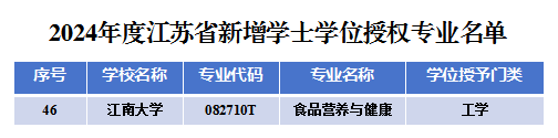 近日,江苏省学位委员会、江苏省教育厅下发《关于公布2024年度新增学士学位授权专业名单的通知》(苏学位字函〔2024〕3号),我校食品营养与健康专业成功新增为学士学位授权专业。
