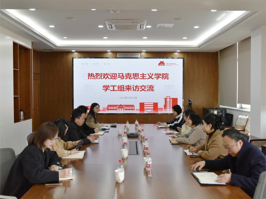 3月20日,江南大学马克思主义学院党委副书记兼副院长郑丹丹,学工办主任兼分团委书记周琳,辅导员孙西平、王圣舟,分团委副书记(兼)肖洋来访我院。党委副书记兼副院长李雷,学工办主任兼分团委书记李金杰,辅导员胡卉君、张任、崔家玮参与座谈交流。双方分别介绍工作理念、思路、举措和成效,并就跨学科之间的人才培养交流、学生工作互动、思政教育融合进行深入探讨,期待未来在党团教育活动、创新创业竞赛等领域加强合作,实现共赢。