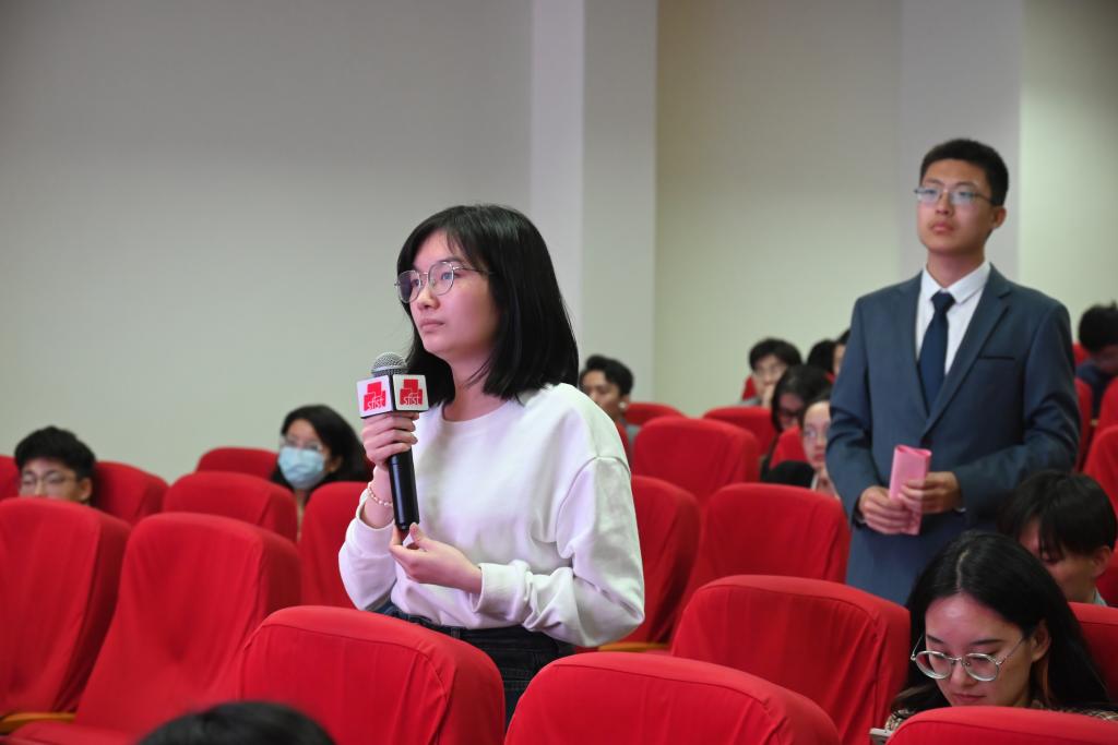 在现场交流环节,同学们针对大赛的具体要求等细节问题积极提问,企业嘉宾耐心作答,现场气氛十分热烈。